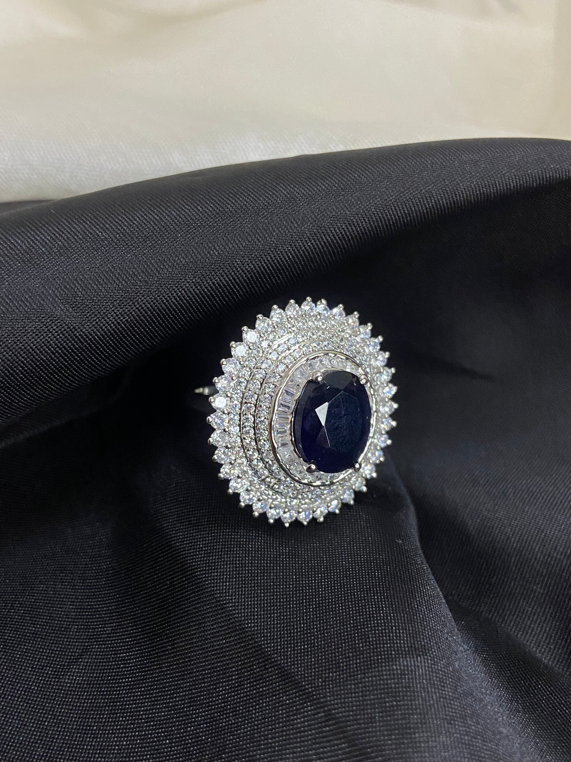Black Beauty Cocktail Ring | 92.5 Pure Stamped Sterling Silver | With Ad Work